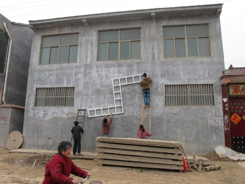 二姐和姐夫领取了一个SOL LEWITT的雕塑,他们家在邻村赵庄。路上有人问这是什么,他说是个“玩意儿”。拿到家里之后,姐夫赵本强说这个设计的不好,很难应用。姐姐说挂在屋子的外墙上,他说太像德国党卫军的纳粹符号。最终,二姐坚持挂在二楼的室内墙上,作为艺术品来欣赏。